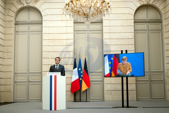 Emamnuel Macron i Angela Merkel podczas videokonferencji