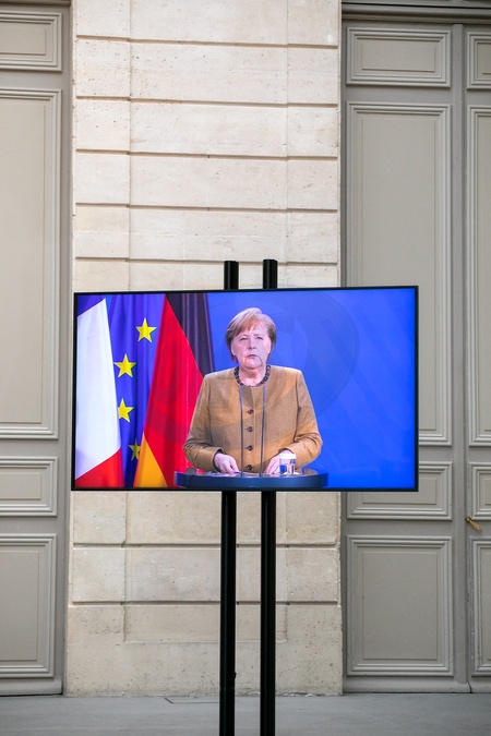 Emamnuel Macron i Angela Merkel podczas videokonferencji