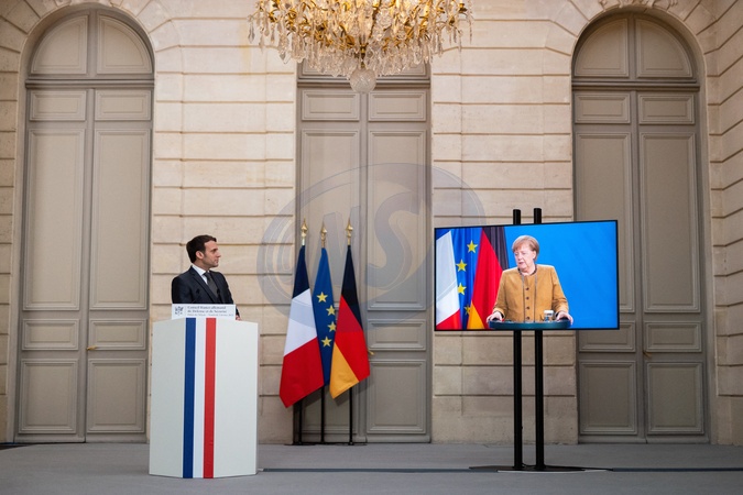 Emamnuel Macron i Angela Merkel podczas videokonferencji