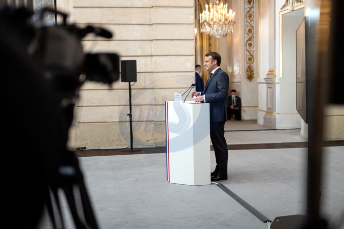 Emamnuel Macron i Angela Merkel podczas videokonferencji