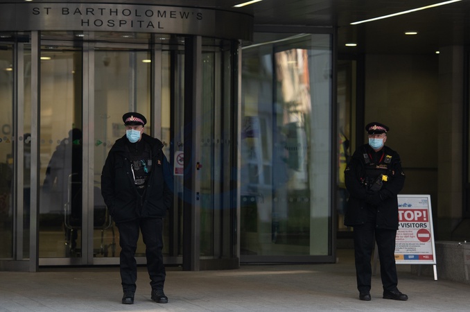 Policja i lekarze przed szpitalem w ktorym jest ksiaze Filip