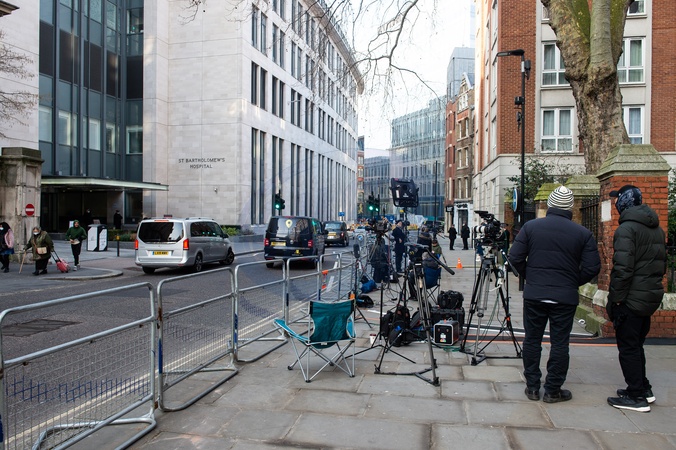 Policja i lekarze przed szpitalem w ktorym jest ksiaze Filip