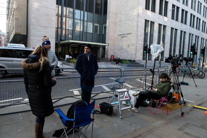 Policja i lekarze przed szpitalem w ktorym jest ksiaze Filip