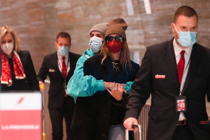 Justin Bieber w dziurawej bluzie na lotnisku - razem z zona Hailey