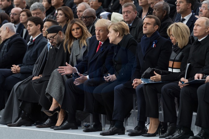 Donald Trump, Melania, Angela Merkel, Emmanuel Macron, Brigitte, Vladimir Putin
