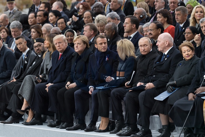 Donald Trump, Melania, Angela Merkel, Emmanuel Macron, Brigitte, Vladimir Putin