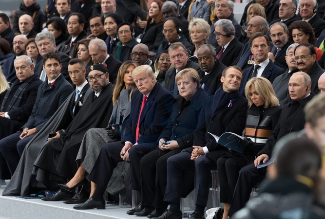 Donald Trump, Melania, Angela Merkel, Emmanuel Macron, Brigitte, Vladimir Putin