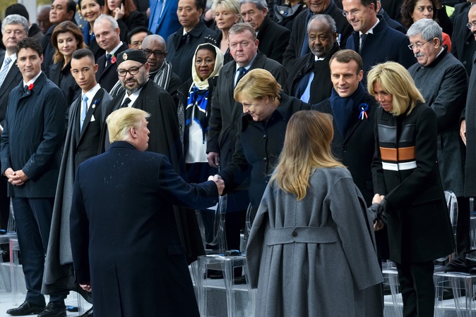 Ksiaze Hassan, krol Mohammed VI, Donald Trump, Melania, Emmanuel Macron, Brigitte
