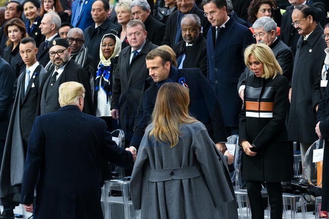 Ksiaze Hassan, krol Mohammed VI, Donald Trump, Melania, Emmanuel Macron, Brigitte.jpg