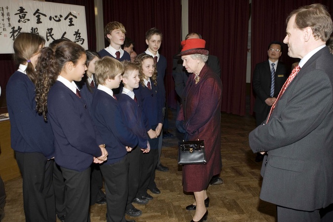 Krolowa Elzbieta ll odwiedza Liceum im. Krola Edwarda VII w Norfolk. Anglia, Wielka Brytania