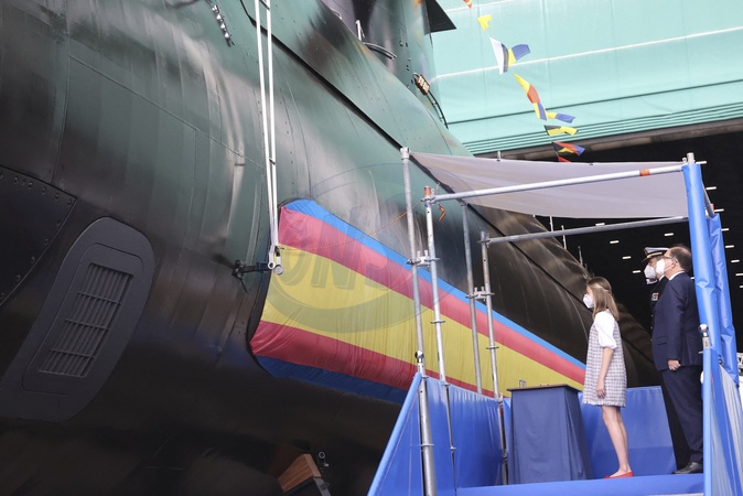 Krolowa Letizia i krol Filip z corkami uczestnicza w wodowaniu okretu podwodnego S-81