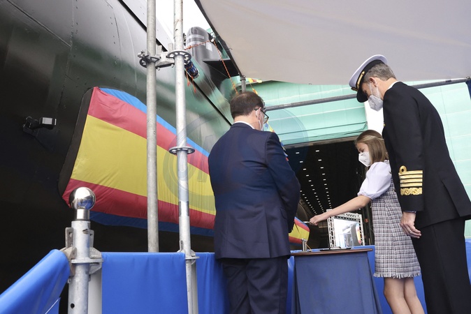 Krolowa Letizia i krol Filip z corkami uczestnicza w wodowaniu okretu podwodnego S-81