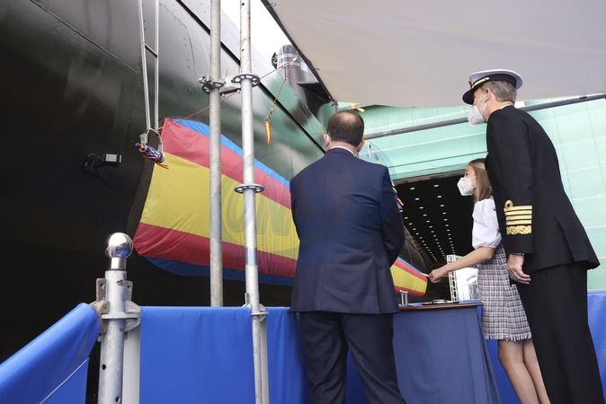 Krolowa Letizia i krol Filip z corkami uczestnicza w wodowaniu okretu podwodnego S-81
