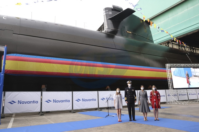 Krolowa Letizia i krol Filip z corkami uczestnicza w wodowaniu okretu podwodnego S-81