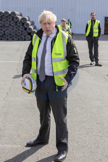 Boris Johnson w odblaskowej kamizelce podczas wizyty w Walii