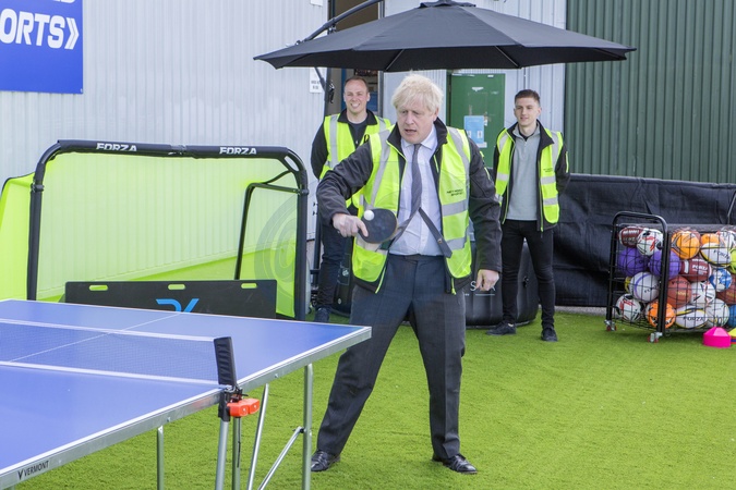 Boris Johnson w odblaskowej kamizelce podczas wizyty w Walii