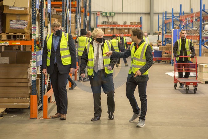 Boris Johnson w odblaskowej kamizelce podczas wizyty w Walii