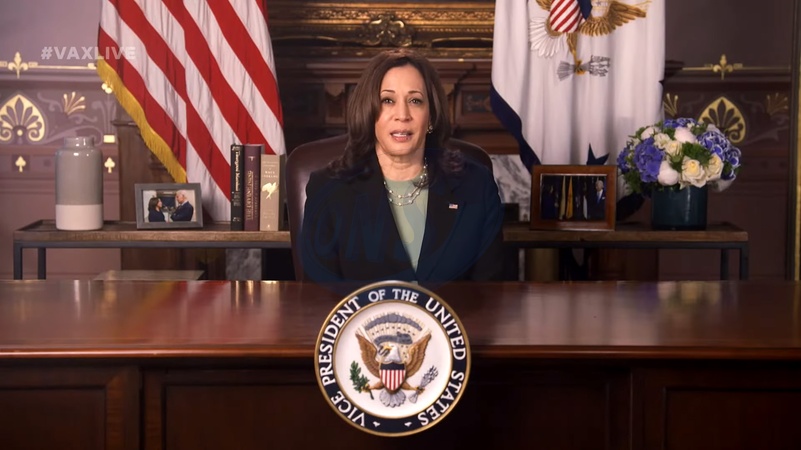 Kamala Harris przemawia podczas,Global Citizen Vax Live The Concert to Reunite the World