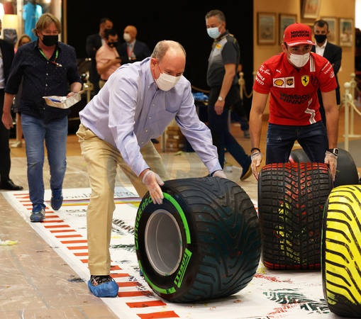 Ksiaze Albert z dziecmi tworza prace plastyczne na Grand Prix Monaco 2021