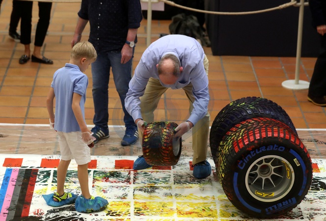 Ksiaze Albert z dziecmi tworza prace plastyczne na Grand Prix Monaco 2021