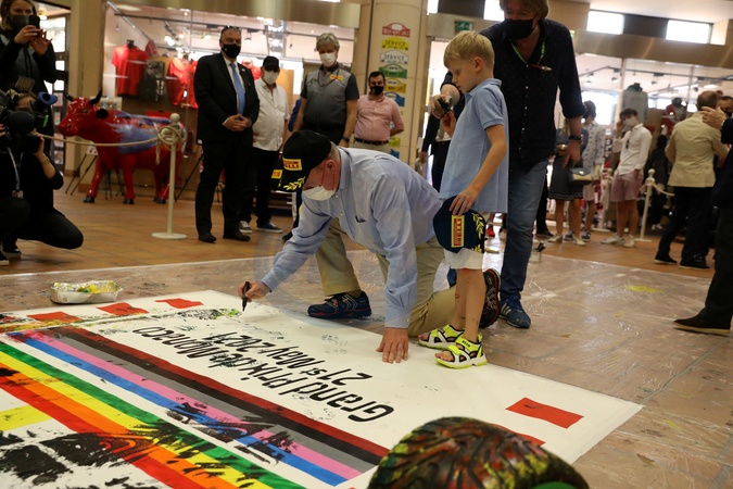 Ksiaze Albert z dziecmi tworza prace plastyczne na Grand Prix Monaco 2021