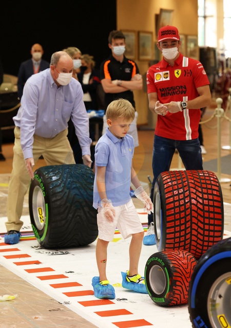 Ksiaze Albert z dziecmi tworza prace plastyczne na Grand Prix Monaco 2021