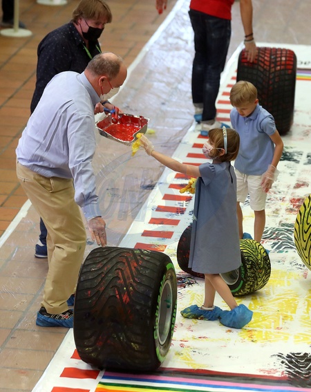 Ksiaze Albert z dziecmi tworza prace plastyczne na Grand Prix Monaco 2021
