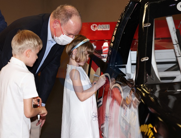 Ksiaze Albert z dziecmi tworza prace plastyczne na Grand Prix Monaco 2021