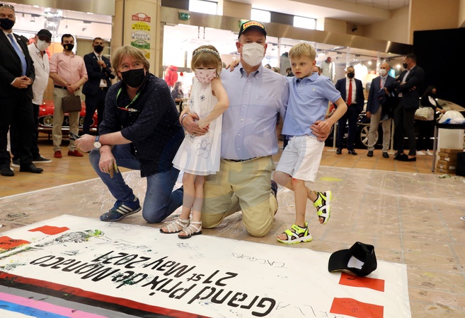 Ksiaze Albert z dziecmi tworza prace plastyczne na Grand Prix Monaco 2021