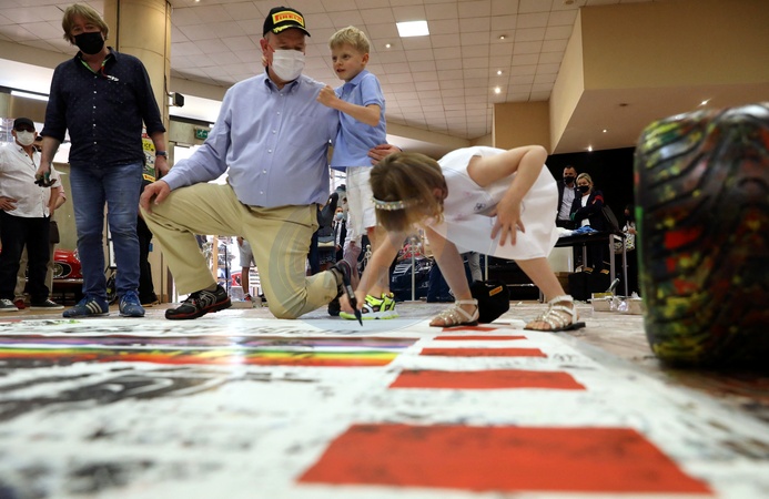 Ksiaze Albert z dziecmi tworza prace plastyczne na Grand Prix Monaco 2021