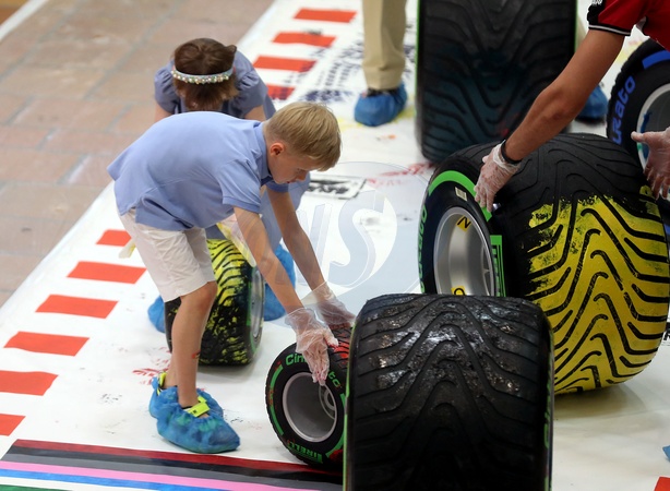 Ksiaze Albert z dziecmi tworza prace plastyczne na Grand Prix Monaco 2021