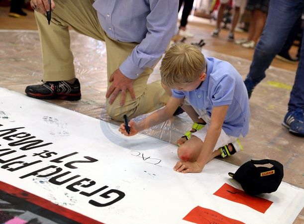 Ksiaze Albert z dziecmi tworza prace plastyczne na Grand Prix Monaco 2021