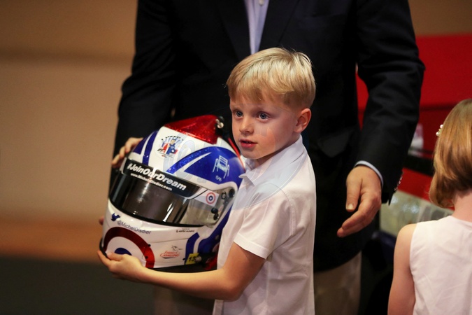 Ksiaze Albert z dziecmi tworza prace plastyczne na Grand Prix Monaco 2021
