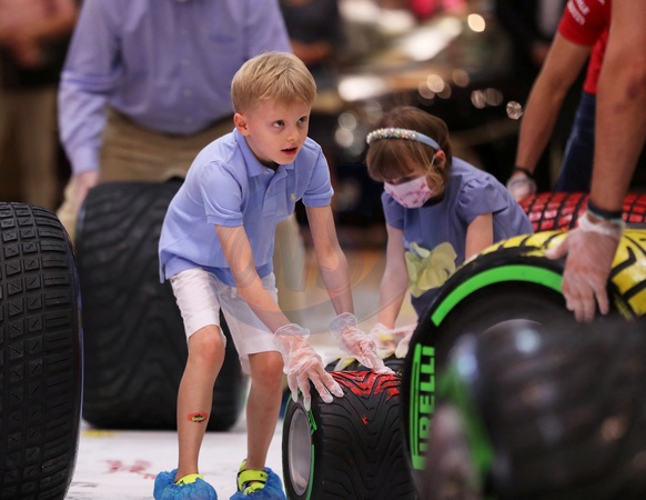 Ksiaze Albert z dziecmi tworza prace plastyczne na Grand Prix Monaco 2021