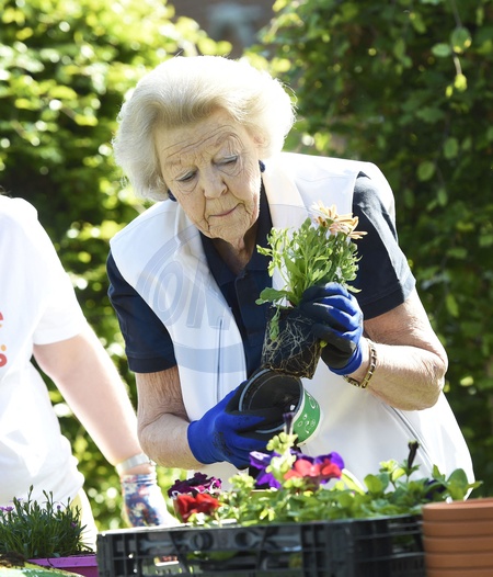 Ksiezna Beatrix sadzi kwiaty jako wolontariuszka