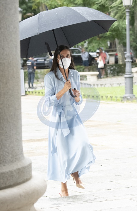 Krolowa Letizia w blekitnej sukience na wernisazu