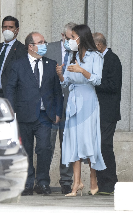 Krolowa Letizia w blekitnej sukience na wernisazu