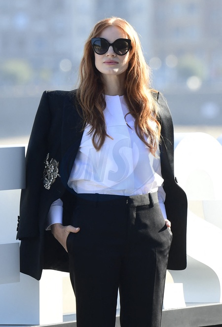 Jessica Chastain na photocall filmu The Eyes of Tammy Faye na Festiwalu w San Sebastian