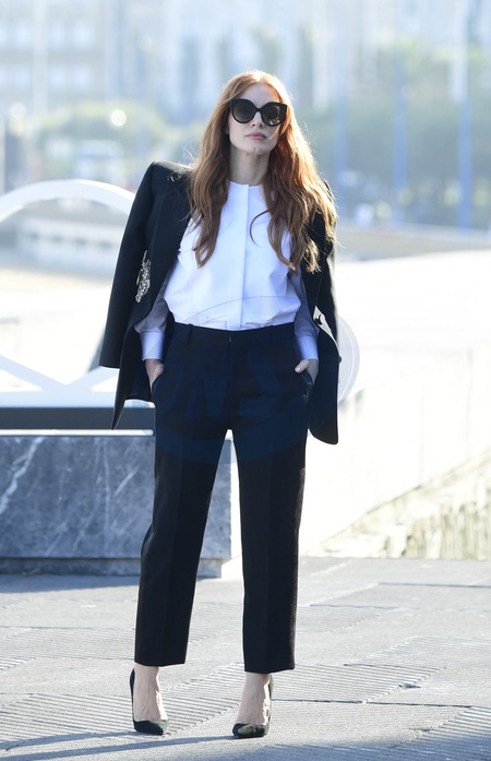Jessica Chastain na photocall filmu The Eyes of Tammy Faye na Festiwalu w San Sebastian