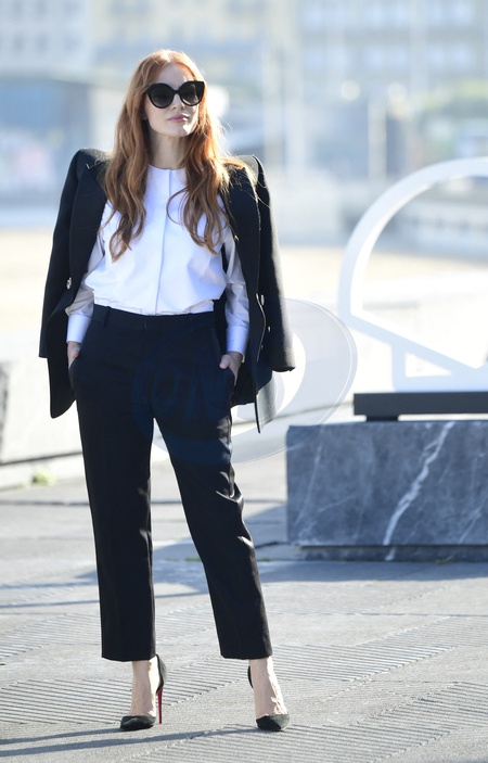 Jessica Chastain na photocall filmu The Eyes of Tammy Faye na Festiwalu w San Sebastian