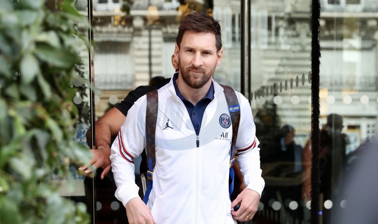 Leo Messi wychodzi z hotelu w Paryzu