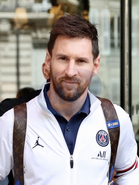 Leo Messi wychodzi z hotelu w Paryzu
