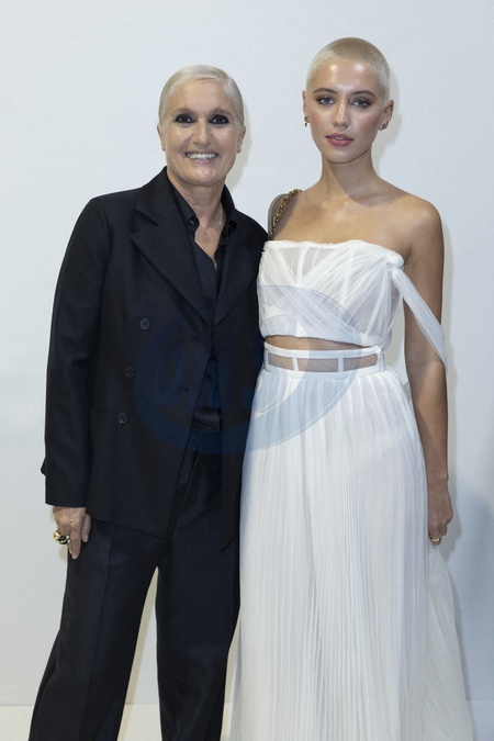 Maria Grazia Chiuri pozuje z goscmi na pokazie DIOR