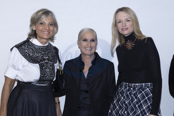 Maria Grazia Chiuri pozuje z goscmi na pokazie DIOR