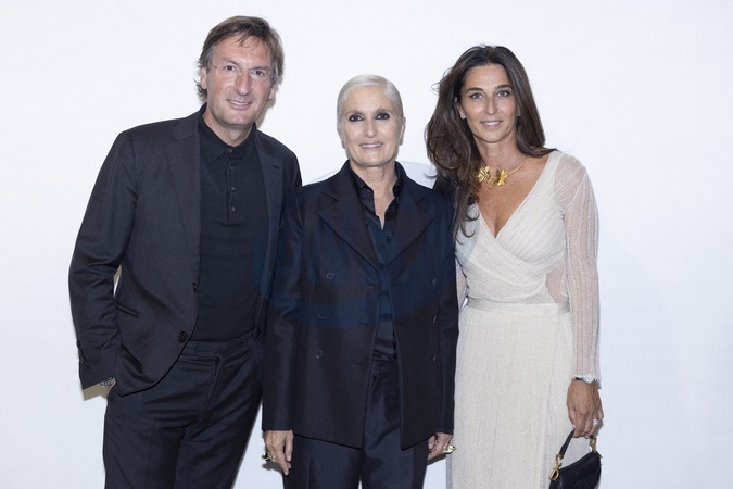 Maria Grazia Chiuri pozuje z goscmi na pokazie DIOR