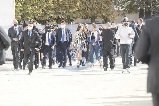 Goscie wracaja z pokazu Dior w Paryzu