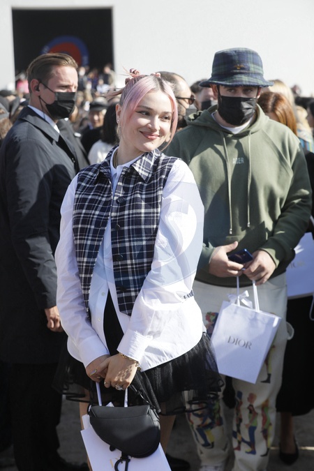 Goscie wracaja z pokazu Dior w Paryzu