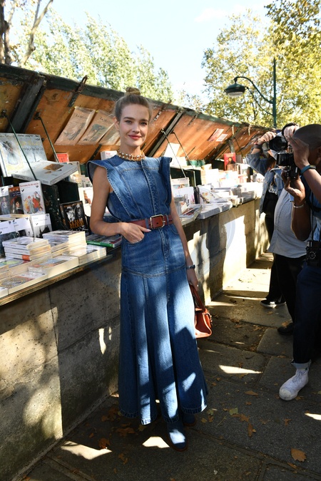 Natalia Vodianova w jeansowej sukience na pokazie Chloe