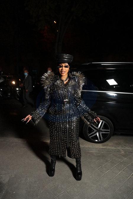 Cardi B w plaszczu z jetami, cwiekami i kolcami