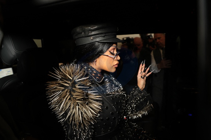 Cardi B w plaszczu z jetami, cwiekami i kolcami